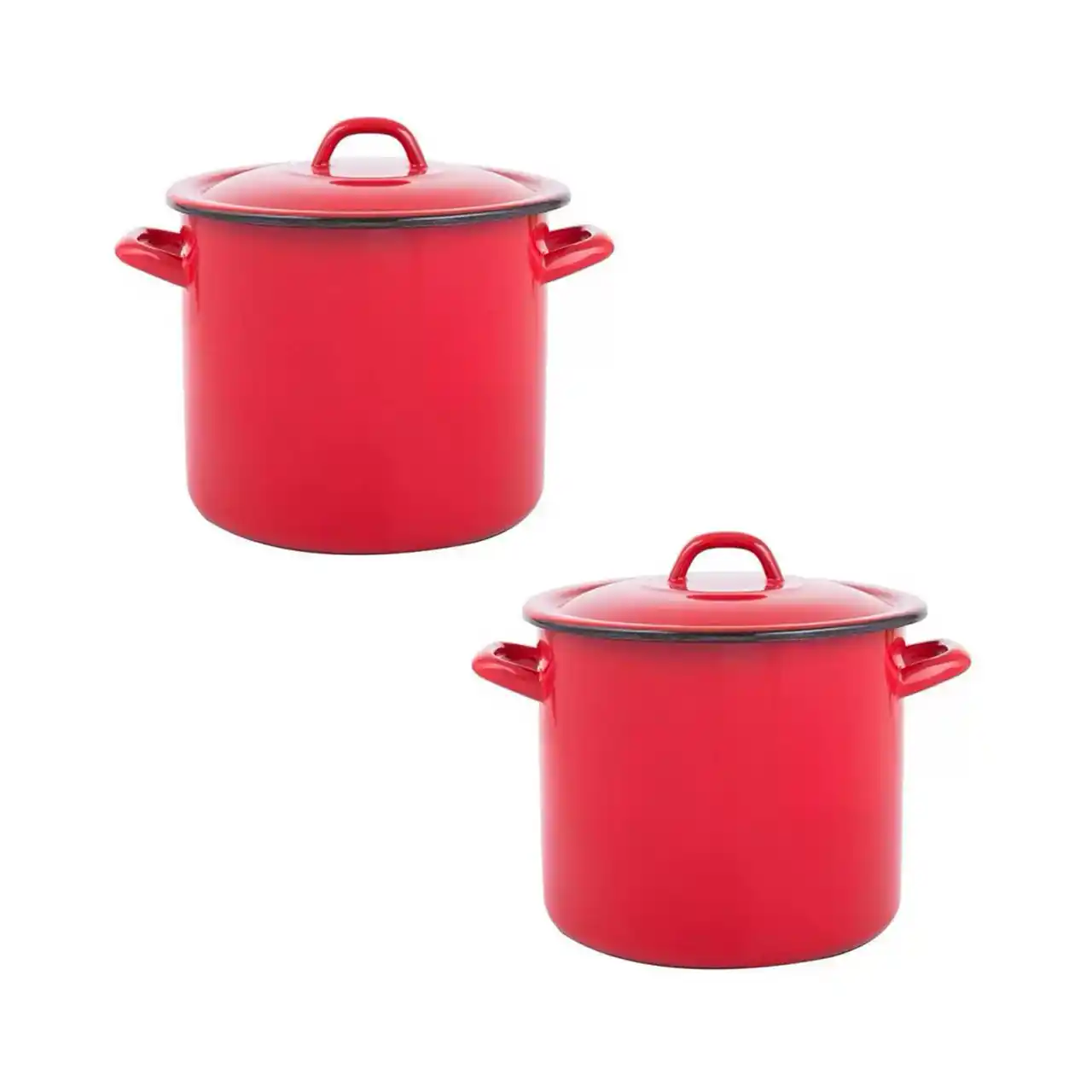 Pachet 2 bucati - Oala emailata, Cu capac, 18 litri, Rosie