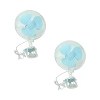 Pachet 2 bucati - Ventilator de birou cu prindere, 220 V, 2 trepte, Buton on/off, Alb-Turcoaz