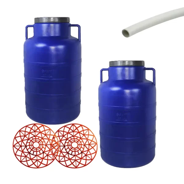 Pachet - 2 x Butoi plastic 60L inalt 2 x Presator muraturi + Teava de suflat