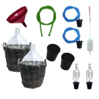 Pachet - 2 x Damigeana 25L din sticla, In cos din rachita, 2 x Dop etansare 2 x Dop cu serpentina 2 x Dop cu furtun 1 x Perie 1 x palnie mare 1.5m furtun pentru tras vinul