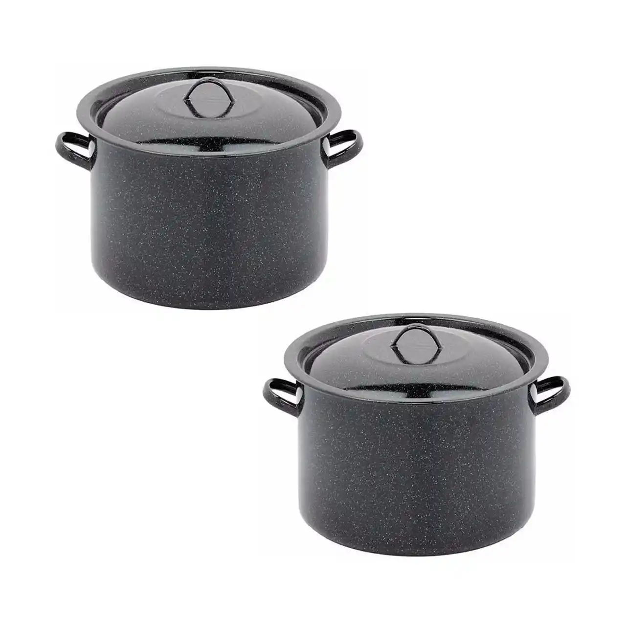 Pachet 2 x Oala emailata cu capac 20 litri, neagra