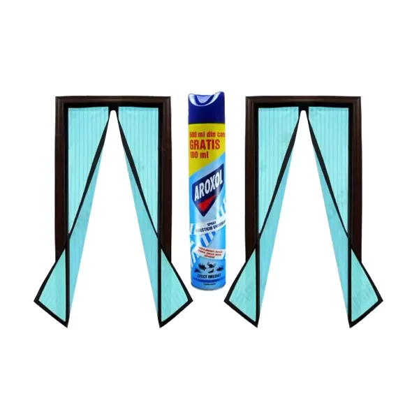 Cele doua plase sunt insotite in pachet de un insecticid universal sub forma de spray. Aroxol spray universal cu efect imediat actioneaza imediat impotriva tuturor insectelor, zburatoare sau taratoare. Efectul este de lunga durata, iar spatiul protejat cu plasa albastra si insecticid ramane lipsit de tantari vreme indelungata.