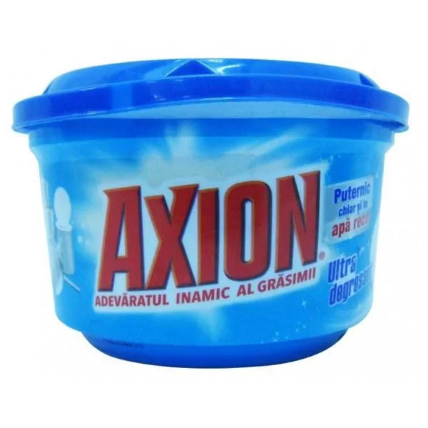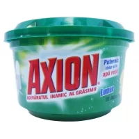 Axion contine formula puternica Triple Active cu scopul de a curata cele mai dificile tipuri de grasime. Acesta elimina mirosurile persistente si lasa vasele curate si placut parfumate.