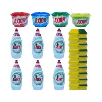 Cu pachetul de 20 produse format din Fairy detergent vase, Axion pasta si Bureti de vase veti avea o cantitate mai mare de vase curate, degresate si stralucitoare.