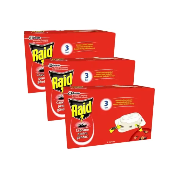 Raid capcane pentru gandaci contine Abamectin, un ingredient care omoara in mod continuu gandacii.Acest produs este asa de avansat incat omoara gandacii in locul care se inmultesc, ajutandu-te sa scapi de gandaci timp de pana la 3 luni.Capcanele pot fi asezate oriunde vezi gandaci, chiar si in dulapuri.Produsul funtioneaza garantat chiar si impotriva infestarilor severe cu gandaci.