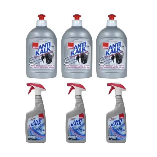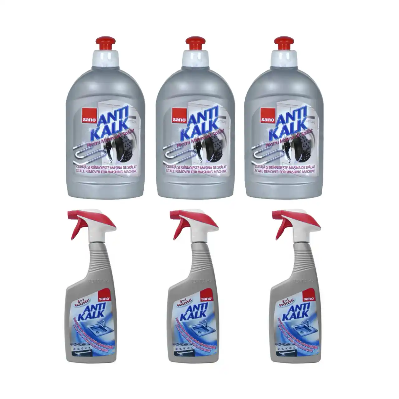 Pachet – 3 x Sano AntiKalk universal cu pulverizator 700 ml + 3 x Sano Antikalk pentru masina de spalat 500ml