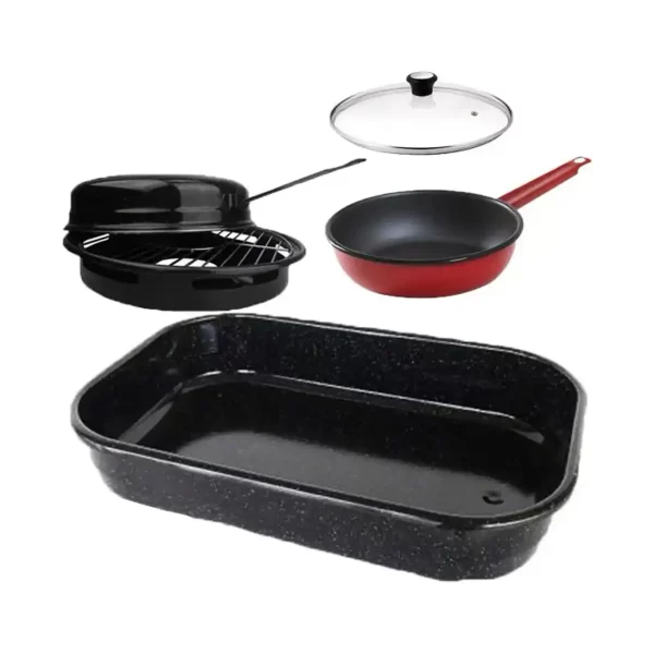 Pachet - Grill emailat + Tava emailata + Tigaie teflon + Capac Yena