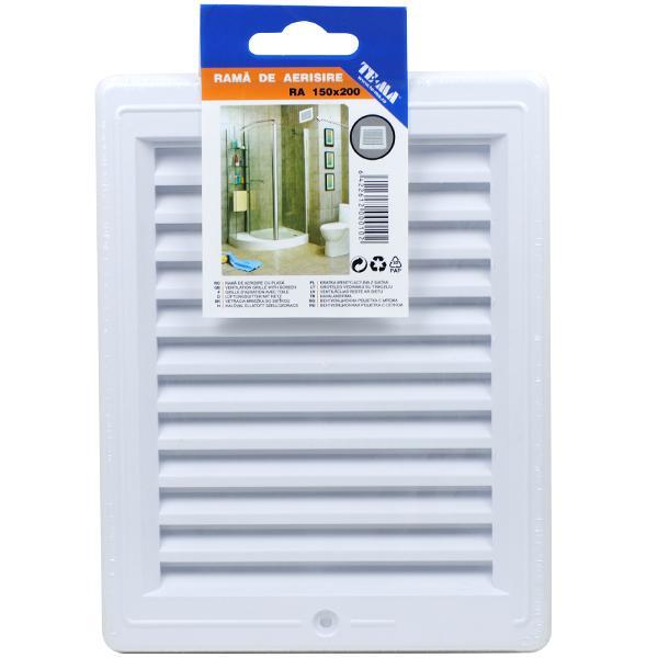 Ramele de aerisire cu plasa de 150 x 200 mm de la sunt recomandate pentru aerisirea incaperilor de mici dimensiuni, cum ar fi debaraua, camara, toaleta, etc. Datorita plasei cu care este dotata aceasta rama, insectele si zburatoarele nu vor putea intra in incaperi. Multumita plasticului din care sunt confectionate aceste rame cu plasa de aerisire nu se deterioreaza din cauza razelor UV si nu se ingalbenesc.