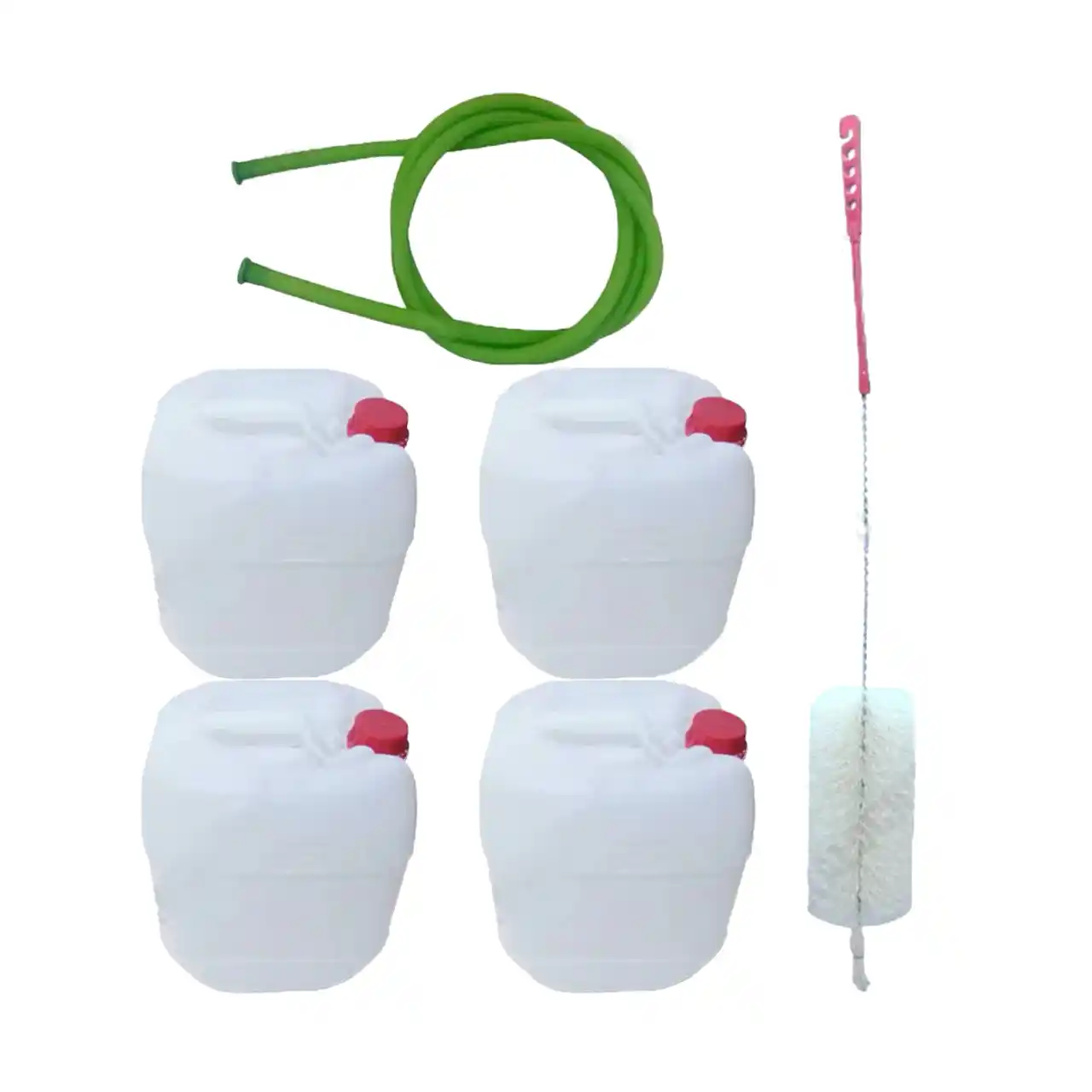 Pachet - 4 x Bidon plastic 10L + Perie spalat damigene + Furtun tras vin 1.5m