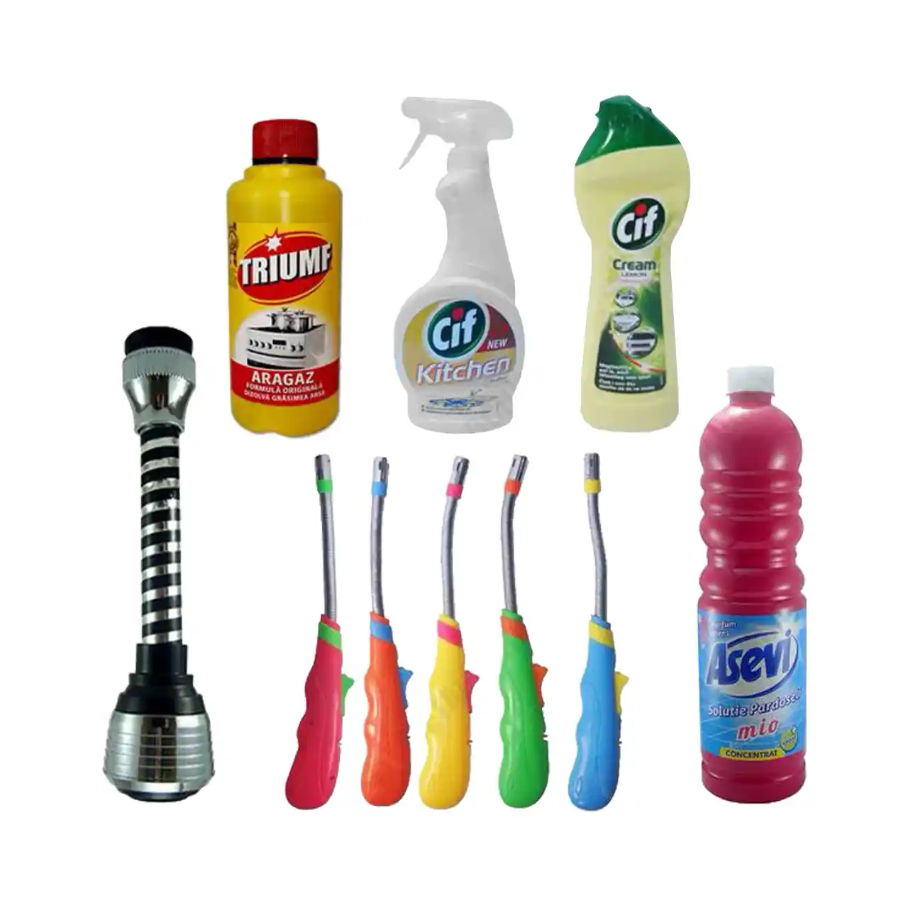 Pachet - 5 x Aprinzator aragaz flexibil, Solutii de curatat (Cif, Asevi, Triumf)