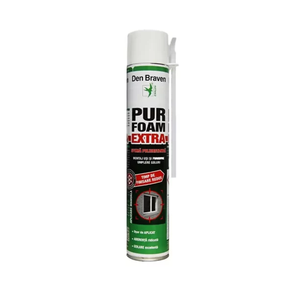 Pachetul cu 6 bucati de spuma poliuretanica cu aplicare manuala de la cunoscutul producator Den Braven in cantitate de 700ml este o solutie unica si remarcabila, intrucat nu necesita alti aditivi de lipire sau fixare mecanica. Spuma Den Braven este capabila sa previna dezvoltarea ciupercilor sau microbilor si nu se deterioreaza usor din cauza rozatoarelor (soareci / sobolani). Mai mult decat atat, O astfel de Spuma poliuretanica, devine extrem de rezistenta dupa uscare, impotriva bazelor, acizilor, solventilor, sau uleiurilor. Cu Den Braven Spuma poliuretanica veti putea umple rapid golurile in tencuiala, caramida, lemn, PVC, veti monta usor ferestre, veti nivela praguri, glafuri, obloane sau veti crea izolare termica si fonica.