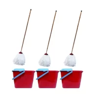 Pachet - 3 x Galeata cu storcator 15l +3 x Coada lemn cu mop din bumbac 250g