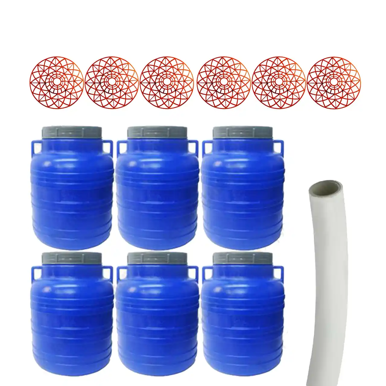 Pachet - 6 x Bidon plastic 10l + 6 x Presa plastic + teava suflat