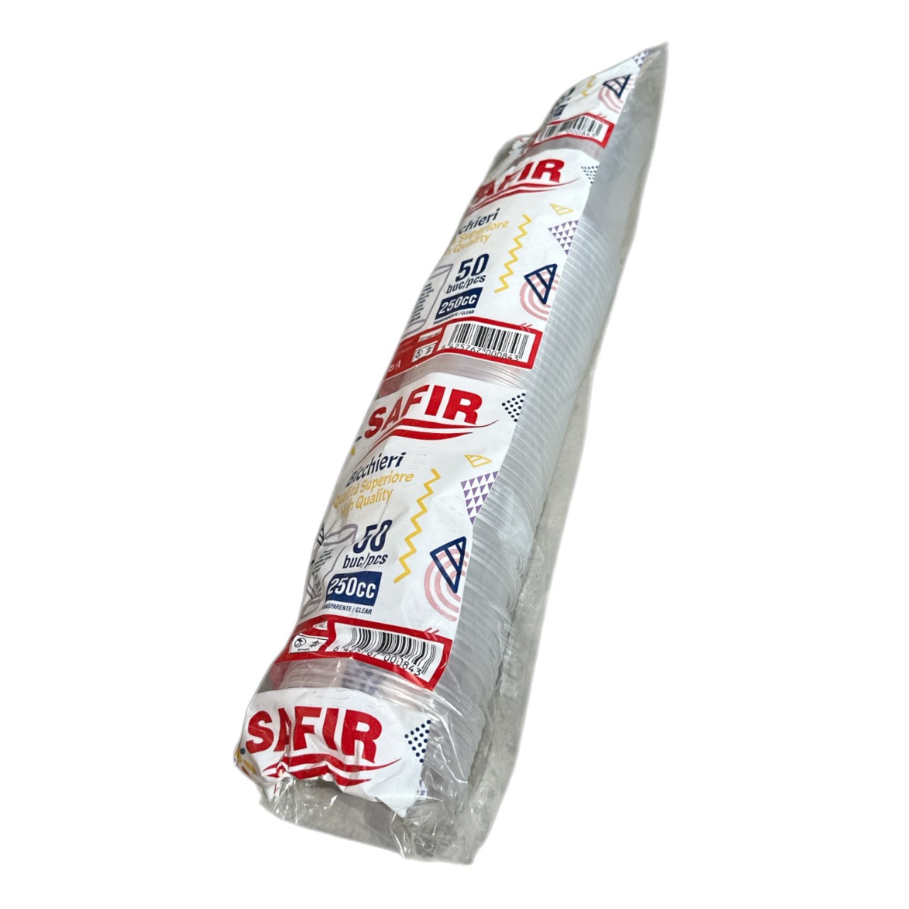 Pahare de unica folosinta din plastic, transparente, 250 ml, set 50 bucati