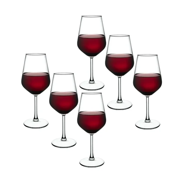 Pahare sticla cu picior pentru vin alb si rosu, 380 ml, 6 buc