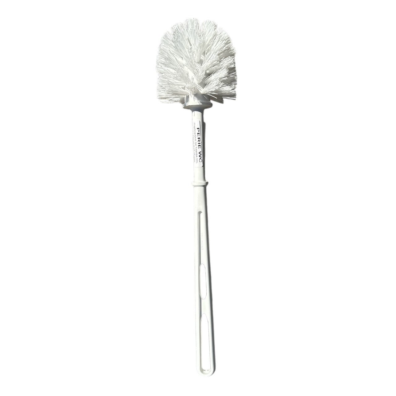 Acest tip de perie WC (toaleta) de culoare alba este fabricata din plastic durificat, cu un total de 56 de smocuri cu fire cu fermitate inalte, destinati pentru a curata vasul de toaleta in numai cateva secunde. Peria de toaleta alba a fost conceputa cu rezistenta foarte inalta timpului si uzurii excesive, fiind utila atat pentru baia proprie cat si pentru baile publice. O baie nu poate fi considerata complet, fara o perie wc. Va puteti mentine vasul de toaleta impecabil si sclipitor, numai cu ajutorul unei astfel de perie pentru curatat toaleta.