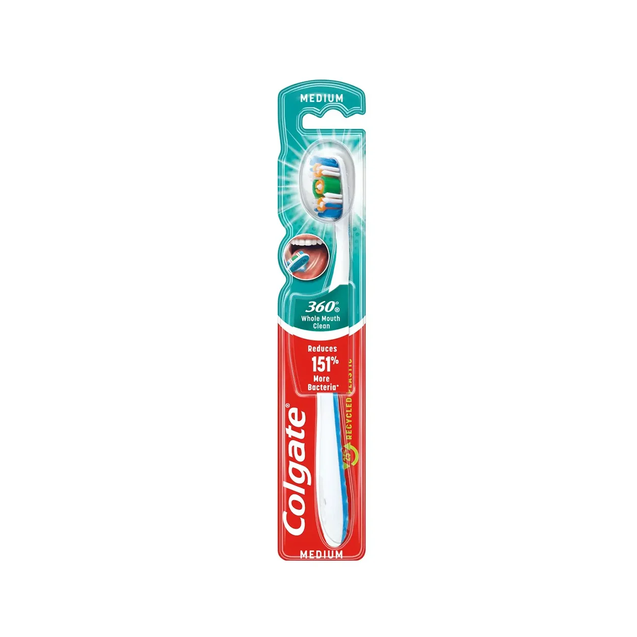 Periuta de dinti 360 Whole Mouth Clean de la Colgate in cantitate de 1 bucata este conceputa in mod special pentru a asigura o curatare de inalt standard a intregii cavitati bucale. Cu peri de duritate medie, aceasta periuta pentru dinti ajuta la indepartarea placii bacteriene, tartrului, petelor si la inlaturarea resturilor de mancare, oferind o curatare delicata fara sa afecteze gingiile. Designul capului flexibil permite accesul in zonele mai putin accesibile, asigurand o igiena orala riguroasa. Manerul ergonomic asigura o prindere confortabila, facilitand un periaj eficient si placut. Este alegerea ideala pentru utilizarea zilnica, contribuind la mentinerea sanatatii orale si la obtinerea unui zambet luminos.