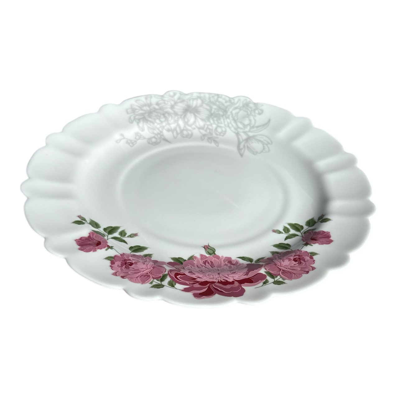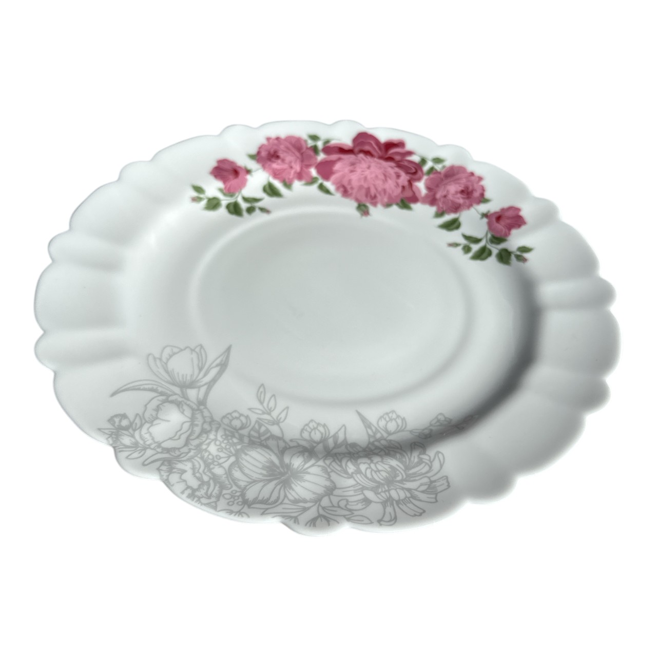 Specificatii Platou rotund din opal, alb model floral 27 cm: