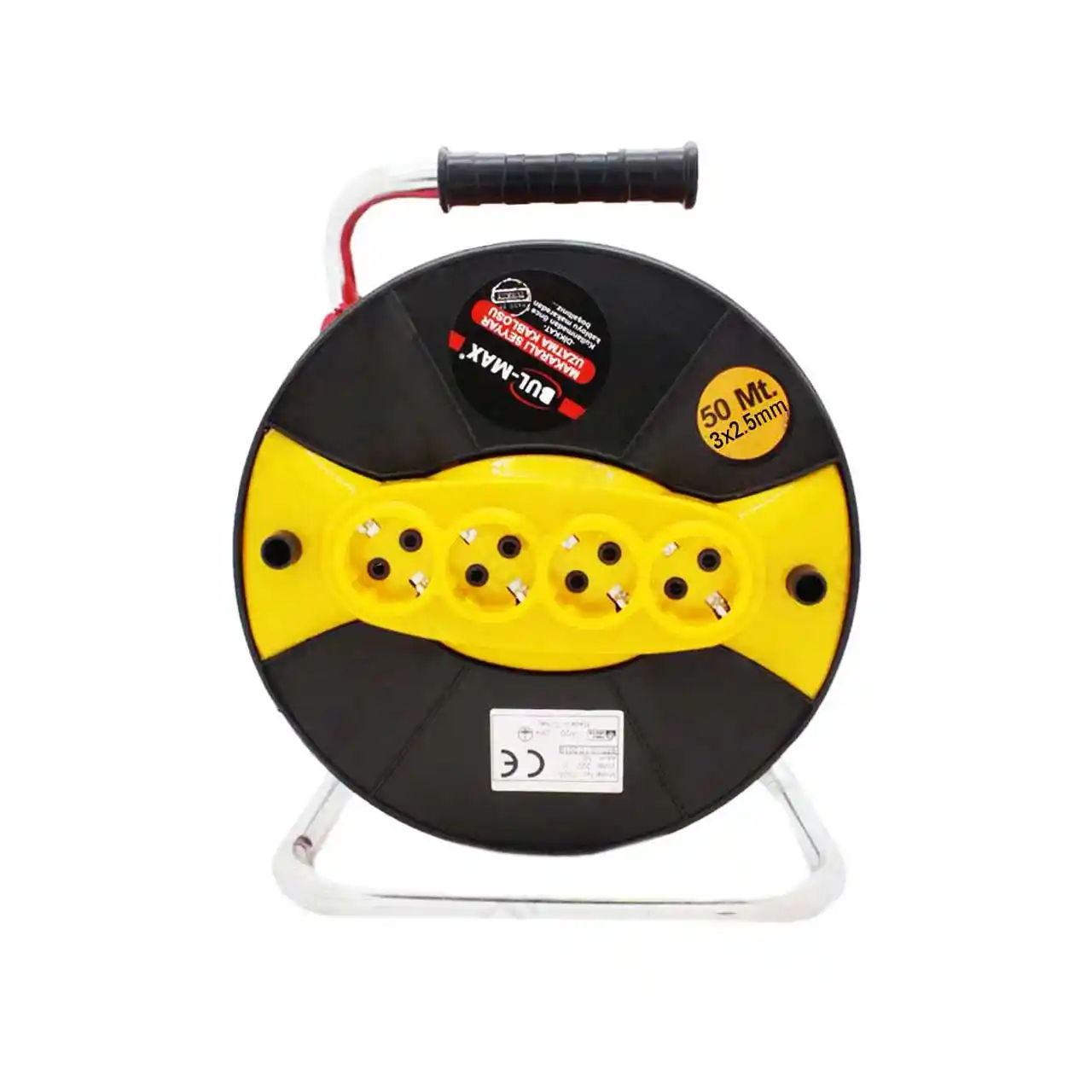 Prelungitorul electric pe tambur de 50 m si 3x2.5 mm va ajuta sa alimentati cu electricitate diferite aparaturi manuale sau automate, atat in constructii, in propriul apartament, casa sau afara in curte. Tamburul este fabricat din plastic durificat sustinut de un cadru special fabricat din otel si vine prevazut cu maner pentru un transport lipsit de efort. Prelungitorul electric cu lungimea de 50 m este alcatuit din 3 fire cu grosimi de 2.5 mm (3x2,5), superior calitativ si foarte durabil, atat fluctuatiilor electrice cat si cutelor sau manevrarilor repetate. Mai mult decat atat, tamburul are pe suprafata sa 4 stechere asejate in linie ce va facilita mult mai usor conectarea oricarui aparat sau unealta electrica. Prelungitorul pe tambur electric de 50M si 3x2.5 mm are un pret accesibil si este foarte util multumita capacitatii sale prelungire si alimentare cu curent electric.
