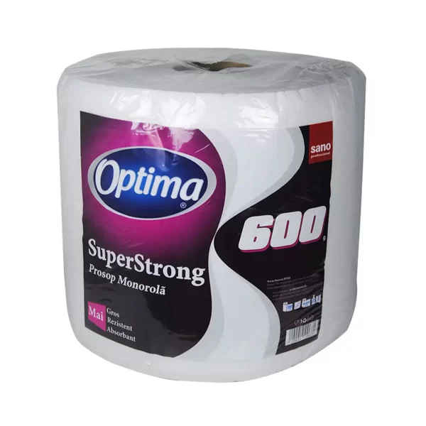 Prosop hartie Sano optima 600g este o solutie eficienta pentru cazurile in care aveti nevoie sa va stergeti pe maini rapid si usor. Prosoapele sunt confectionate din celuloza pura. Prosop hartie Sano optima 600g are o mare putere absorbanta datorita celulozei si nu se rupe usor. Rola de hartie are 66 de metri lungime si este impartita in 280 de foi. Foile au 2 straturi pentru o eficienta, rezistenta si absorbtie marita. Foile sunt pre-taiate in dimensiunile potrivite si sunt usor de separat. Hartia este infasurata pe o rola de carton rezistent. Aceasta rola este ideala pentru uzul casnic (bucatarie, baie etc.), dar si pentru salile de toaleta si in alte locuri unde exista un trafic mare de oameni.