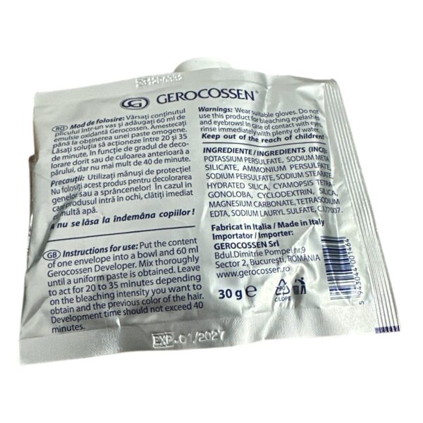 Specificatii Pudra decoloranta pentru par 30g cu emulsie oxidanta 60 ml Gerocossen: