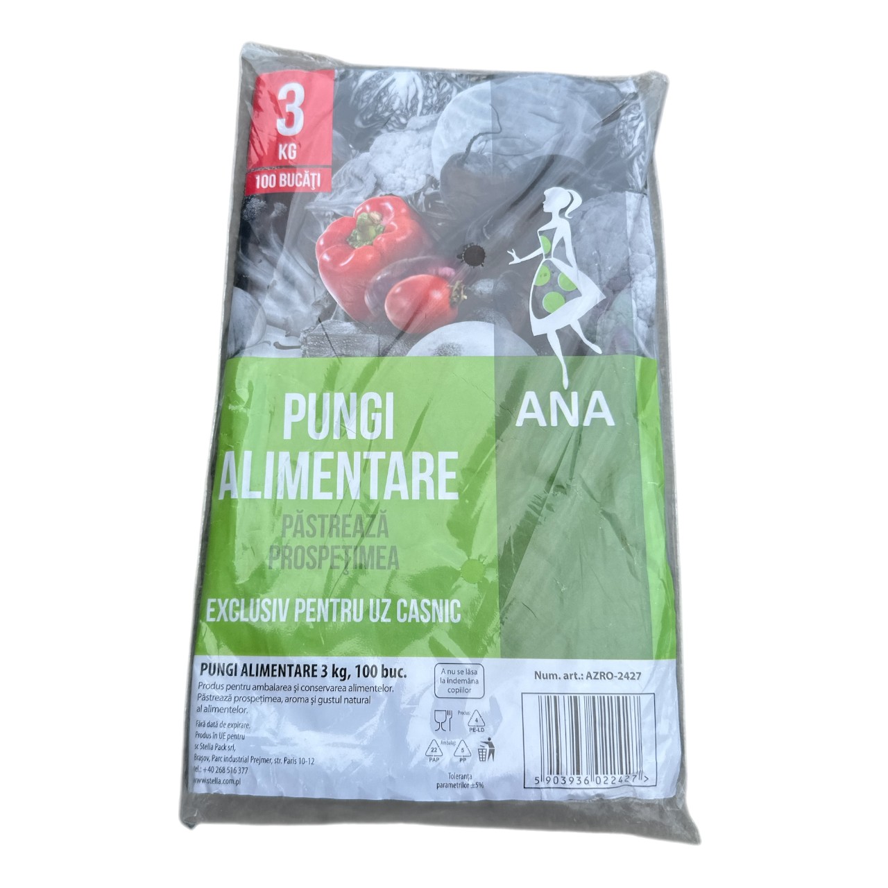 Specificatii Pungi alimentare 3 kg transparente, ANA, 100 bucati