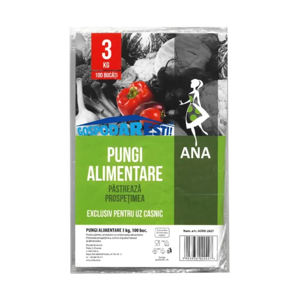 Transparenta pungilor va permite sa identificati rapid continutul. Fie ca le utilizati in bucatarie sau pentru cumparaturi, pungile alimentare ANA sunt un element esential pentru orice gospodarie. Setul de 100 de bucati, va asigura in permanenta pungi de calitate pentru satisfacerea nevoilor in privinta ambalarii si pastrarii alimentelor in camara sau frigider.