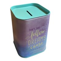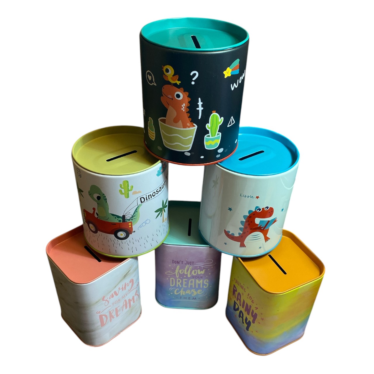 Pusculita bani pentru copii (metalica) diferite forme este o cutie din metal dotata cu capac ce are pe centrul sau un orificiu care permite trecerea oricarei monede sau bancnota. Pusculita de bani este fabricata dintr-un metal durificat care rezista la socuri si lovituri moderate sau variatii de temperatura. In plus, este placut decorata pe exterior intrucat are un imprimeu cu diferite desene. Acest tip de accesoriu pentru copii are scopul de a-i invata sa isi formeze obiceiul economisirii banutilor primiti de la parinti.