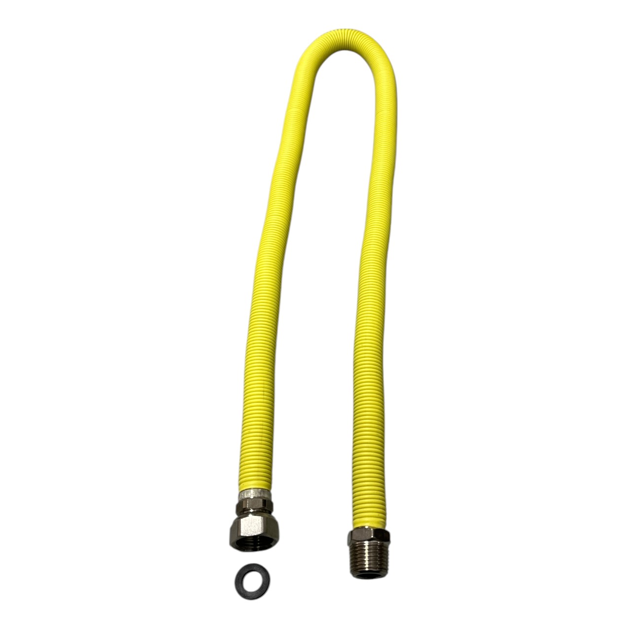Racordul acesta de culoare galbena este creat din material otel inoxidabil si poate atinge lungimi cuprinse intre 30 cm (300 mm) si 60 cm (600 mm).