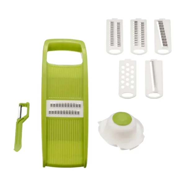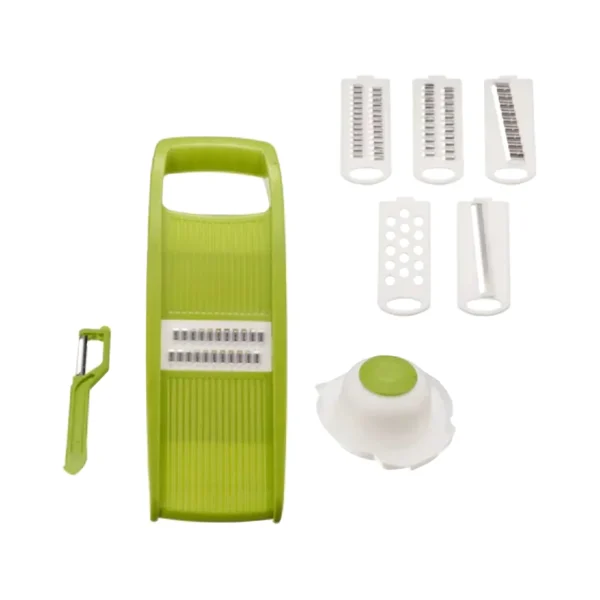 Razatoarea multifunctionala 7 in 1 profesinala cu utilizare manuala este un instrument de bucatarie foolosit pentru taiere, feliere, maruntire sau decojirea legumelor, fructelor, branzei, cascavalului si multor alte alimente. Acestea vine impreuna cu mai multe accesorii si lame diferite, (in total 7 piese) care permit utilizatorilor sa aleaga modul de maruntire necesar. In plus, va ajuta sa economisi timp dar si efort atunci cand prepari mancaruri in bucatarie, deoarece veti taia in diferite moduri alimentele.