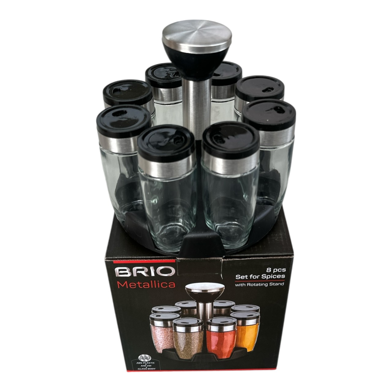 Recipientele de condimente cu suport rotativ, la set de 8 bucati x 90 ml, sunt solutia perfecta pentru organizarea si depozitarea condimentelor, astfel incat sa le aveti la indemana de fiecare data cand gatiti. Acest set include 8 recipiente cu capac, fiecare avand o capacitate de 90 ml, suficient pentru a stoca cantitatea potrivita de condimente. Fiecare recipient este prevazut cu un capac etans, care pastreaza condimentele proaspete si aromate pentru o perioada mai lunga de timp. Suportul rotativ inclus in set faciliteaza accesul la toate recipientele si le mentine organizate intr-un mod eficient. Poti roti suportul pentru a gasi rapid condimentul dorit, economisind timp, facand procesul de gatit mai rapid placut. Recipientele condimente sunt confectionate din sticla, cu plastic si otel inoxidabil. Acestea pot fi umplute cu sare, piper, oregano, cimbru, curry si multe altele.