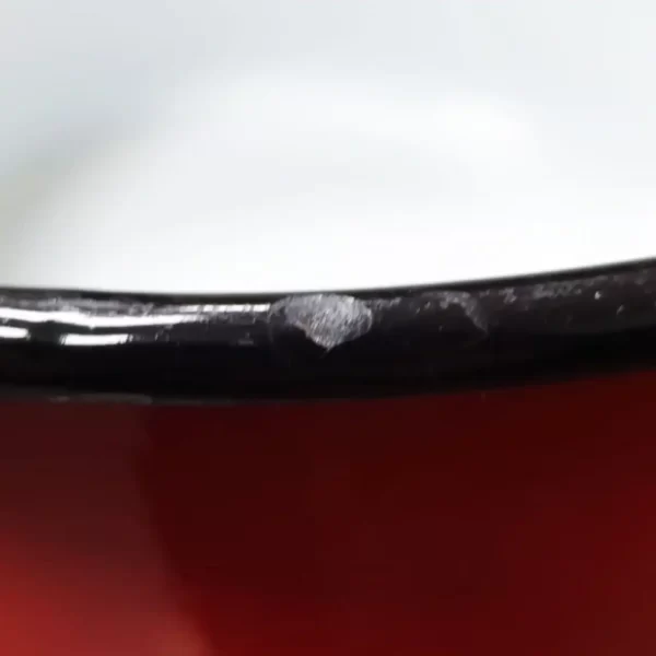 Cratita emailata de 4 litri de culoare rosie este un produs resigilat datorita emailului ciobit de pe marginea superioara. Vedeti pozele inaintea plasarii comenzii.