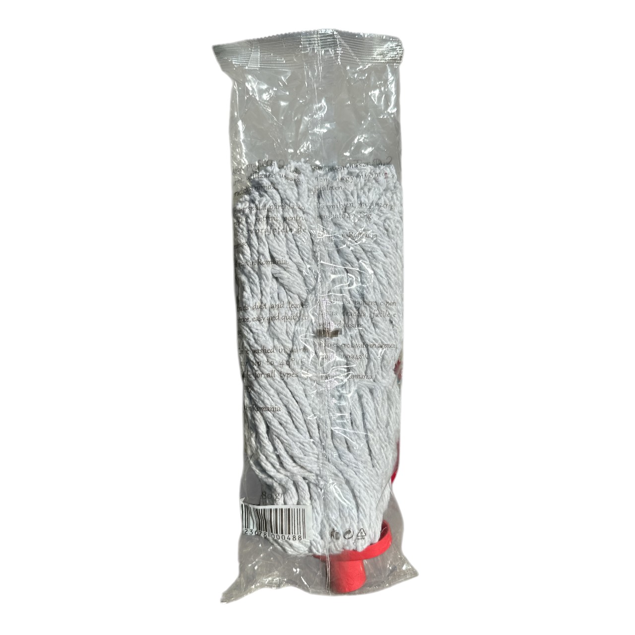 Rezerva mop bumbac realizata din multiple fire rasucite, este un produs potrivit pentru spalarea tuturor pardoselilor si podelelor din lemn, granit, gresie marmura sau orice alt material. Are o mare putere de absorbire a apei, prafului si murdariei fara sa lase nici un fel de urma. Mopul se poate aplica prin infiletare pe coada din lemn sau coada metalica. Intretinerea sa, se poate face prin spalarea sa periodica, fie manual sau in masina de spalat haine.