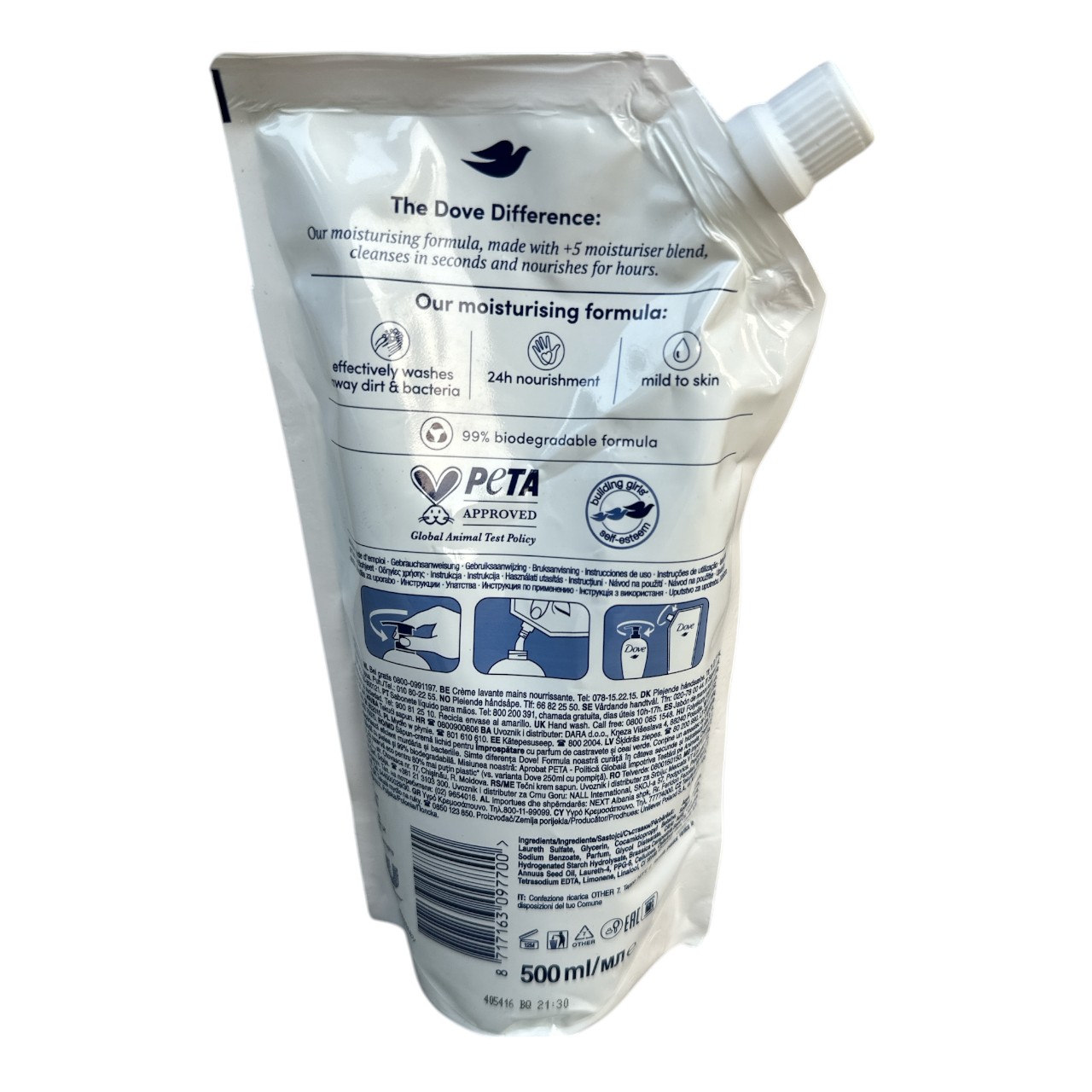 Rezerva de sapun lichid Dove cu extract de castravete, de 500 ml, este o alegere excelenta pentru curatarea si hidratarea eficienta a pielii. Aceasta rezerva ofera suficient sapun lichid pentru utilizare indelungata. Sapunul lichid Dove contine extract natural de castraveti, ce ofera proprietati calmante si revigorante pentru pielea mainilor sua fetei. Totodata, aroma sa proaspata si racoritoare cu castraveti aduce o senzatie de prospetime in timpul utilizarii, pafumeaza si catifeleaza pielea. Aceasta rezerva de sapun lichid Dove cu castraveti te va ajuta sa-ti mentii pielea curata, hidratata si sa o protejezi de uscaciune si orice alt disconfort.