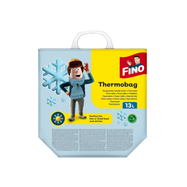 Sacosa termoizolanta Fino, cu volum de 13 litri, este perfecta pentru transportul si pastrarea temporara a alimentelor, mentinandu-le la temperaturile initiale. Poate fi uitlizata pentru cumparaturi, iesiri in aer liber, picnicuri sau calatorii, reusint sa mentina bauturile reci sau alimentele calde mai mult timp, datorita stratului termoizolant din interior. Denumita si sacosa termica sau termobag aceasta are un design simplu cu inchidere ermetica si are toarte pentru o manipulare confortabila dar sigura. Sacosa termoizolanta Fino, cu capacitatea sa de 13 L, asigura suficient spatiu pentru a transporta un volum suficient de mare de alimentare ambalate in caserole sau pungulite.