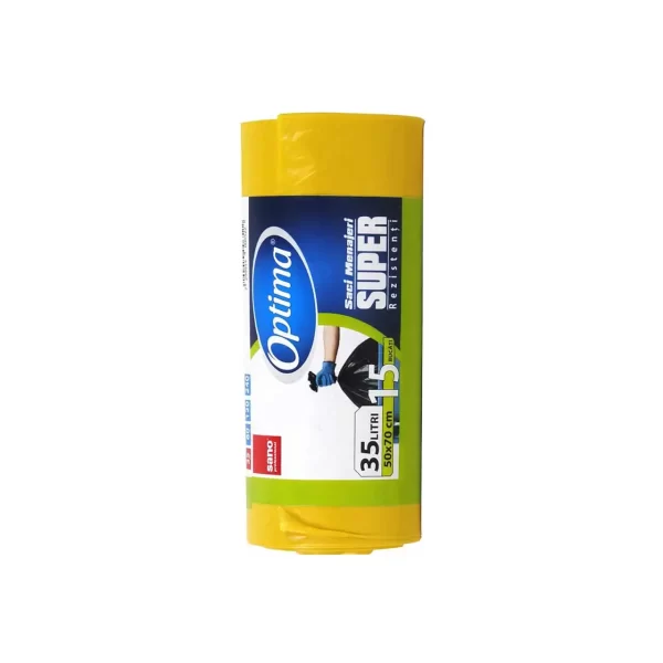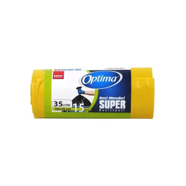 Sano Optima, saci pentru menaj cu capacitatea de 35 litri si de culoare galbena se pot utiliza la cosuri de gunoi de dimensiuni aferente pentru o igiena corespunzatoare domiciliului sau a locului de munca. Datorita materialului foarte rezistent din care este confectionat, rupturile si gaurile prin acesti saci de la Sano Optima sunt foarte rari si, de asemenea, sunt impermeabili. Sunt facuti din polietilena de inalta densitate cunoscut sub numele de HDPE. Duritatea de care dau dovada mai este folositoare si in cazul incoletarii anumitor obiecte de dimensiuni mici pentru o protectie a lor pe parcursul transportului catre destinatie.