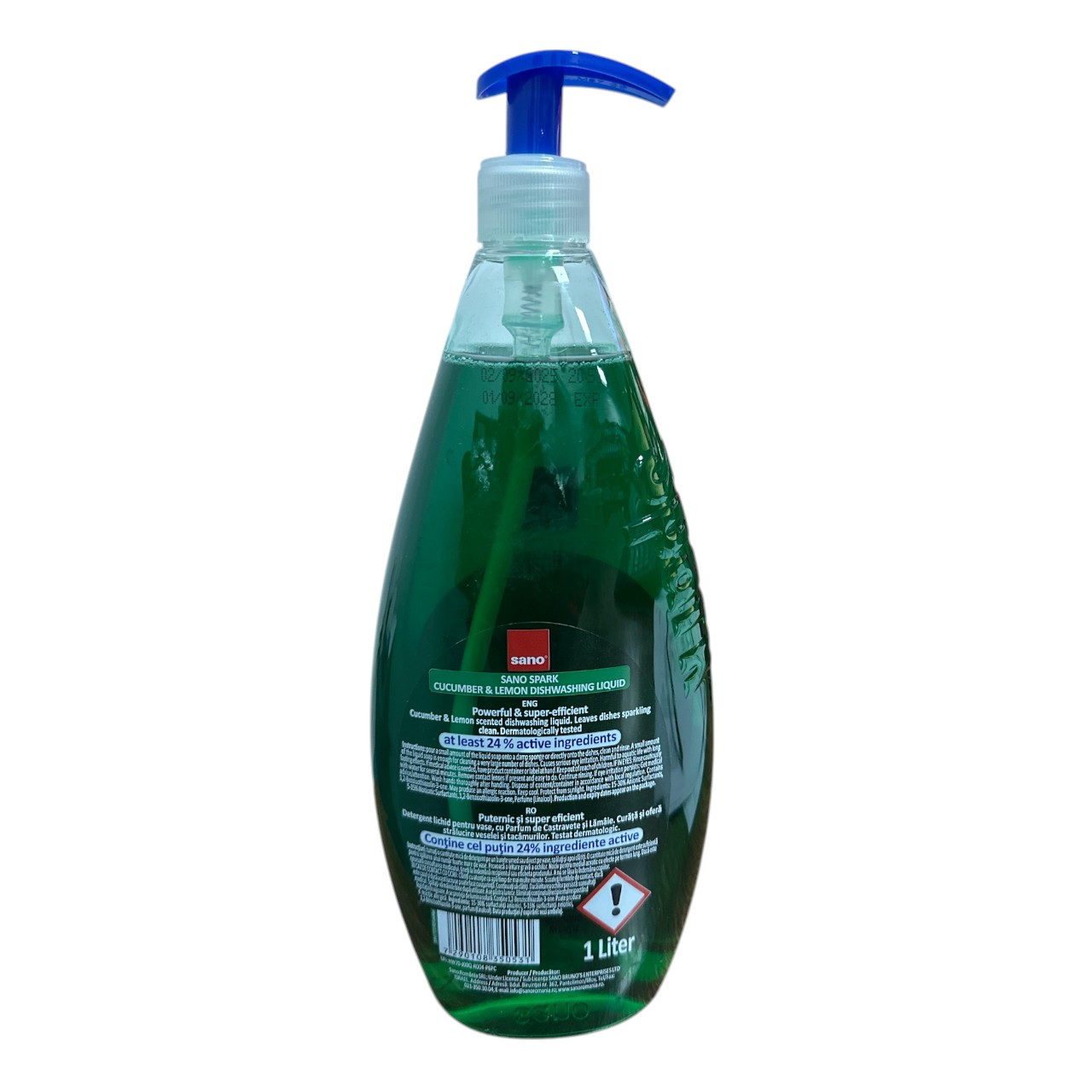 Specificatii: Sano Spark, Detergent de vase lichid cu pompita, Castravete si Lamaie, 1L