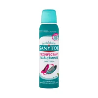 Dezinfectantul de incaltaminte Sanitol spray la 150 ml este un produs extrem de util persoanelor care se confrunta atat cu mirosul neplacut al picioarelor. Acesta nu actioneaza doar la "suprafata" ci si combate bacteriile, fungii si virusii, prevenit cu succes si micoza numita piciorul atletului. Acest spray se poate aplica in interiorul incaltaminei si pe branturi, indiferent ca este vorba de pantofi sport, casual, eleganti, sandale, balerini sau cizme. In plus nu afecteaza materialele din care sunt fabricati incaltamintea, putand fi folosit si pe pielea naturala sau sintetica, pe textile naturale sau alte materiale sintetice. Sanytol dezinfectant incaltaminte ofera prospetime si un parfum placut si discret care persista pe toata durata zilei.