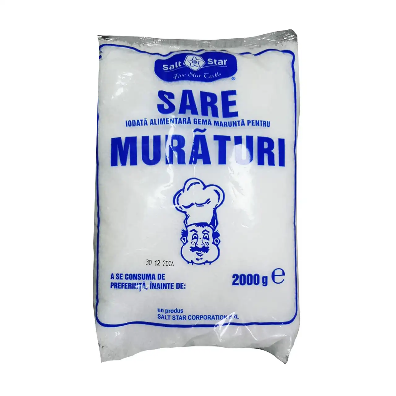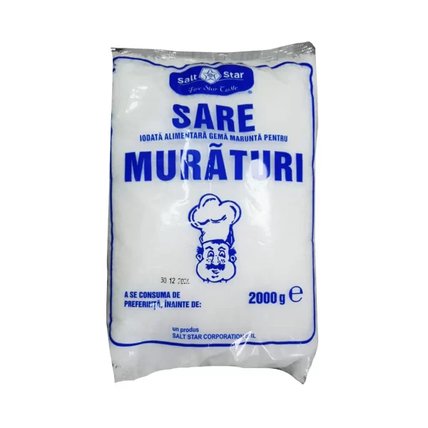 Sare grunjoasa, iodata, pentru muraturi 2 kg este un produs destinat consumului alimentar. Aceasta sare iodata pentru muraturi de tip grunjoasa vine ambalata la punga de 2 kg si este destinata uzului casnic cat si celui industrial. Aceasta sare (clorura de sodiu) iodata (iodura de potasiu) se foloseste de catre bucatari, gospodarii si gospodine la prepararea mancarurilor sau in murarea diferitelor legume in borcane sau butoaie. Mai mult decat atat, sarea grunjoasa iodata mai poate fi utilizata si in dispersarea ei pe alei, strazi sau trotoare astfel incat sa topeasca zapada si sa previna alunecarea.