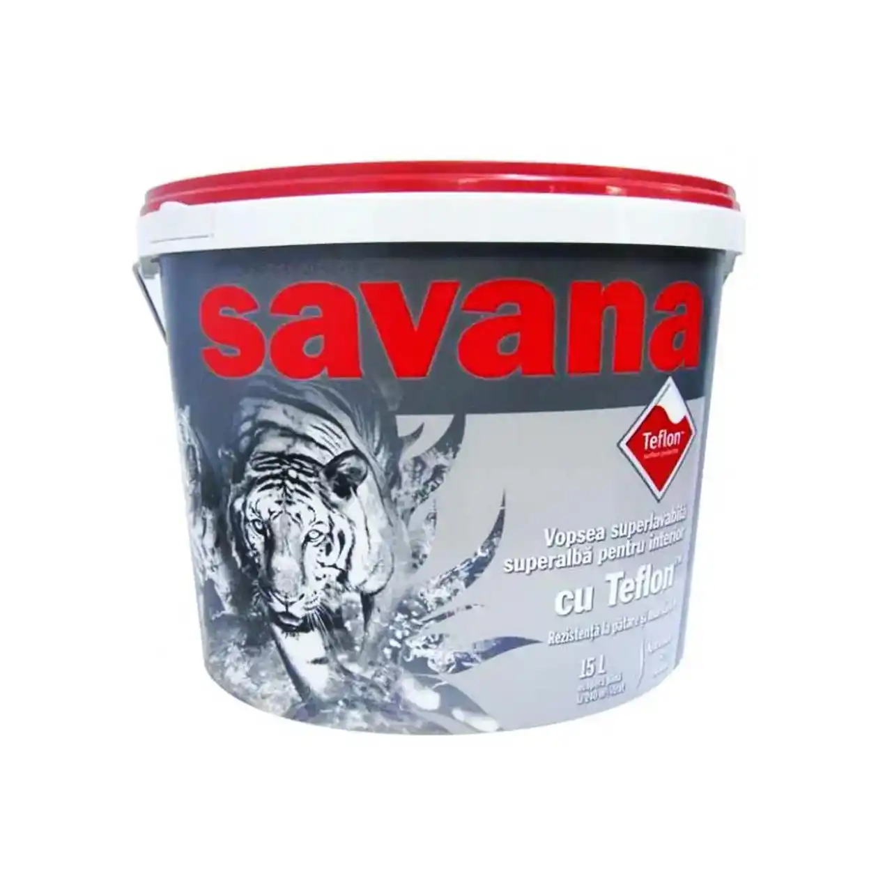 Vopseaua lavabila alba de interior cu teflon in cantitate de 15 litri de la Savana ofera performanta unica multumita continutului sau cu teflon care asigura rezistenta superioara la murdarie sau pete, putand fi curatat mut mai usor. Vopseaua superlavabila de 15L are putere incredibila de acoperire a stratului suport care permite peretelui sa "respire". Lavabila alba iti va decora casa cu un superalb lucios indiferent ca ca este pe tencuiala, var, gips carton, glet, sau beton. Aplicarea vopselei albe cu teflon poate fi facuta prin pensulare, roluire sau cu pomba pe aer.