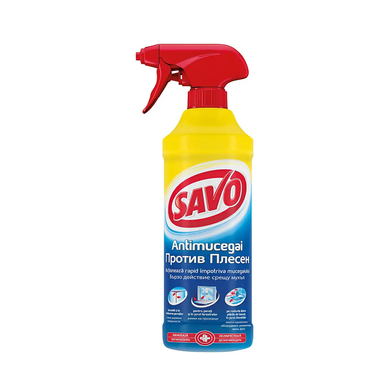 Solutia universala antimucegai de la Savo in cantitate de 500 ml indeparteaza, mentine si dezinfecteaza peretele, imbinarile lor departe de mucegai, fungi fibrosi, lichenii fungii, cat si profilele din plastic, PVC ale geamurilor. Mai mult decat atat Savo antimucegai este dotat cu pulverizator si mai poate fi folosit in baie sau bucatarie, in jurul chiuvetelor sau lavoarelor, direct pe rosturile dintre placile de fanaita, pe suprafete acrilice, din lemn, emailate, zidarie sau cele din otel inoxidabil. Savo este solutia probabil cea mai buna pentru inlaturarea mucegaiului fara sa deterioreze suprafetele, multumita multiplelor ingrediente active pe care acesta le are in compozitie.
