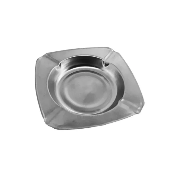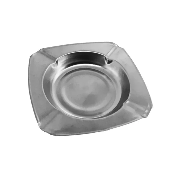 Scrumiera metalica de 11x11 cm (forma patrata) este un mic recipient folosit pentru colectarea scrumului si mucurilor de tigara. Aceasta este prevazuta cu 4 santuri special create pentru mentinerea tigaretelor aprinse. Scrumiera metalica este obtinuta din fier cromat si are o grosime de 0.5 mm astfel incat sa poata reziste la socurile de impact (cazaturi) sau lovituri involuntare. Scrumierea din metal are un design elegant multumita simplicitatii sale. Ea poate fi utilizata in orice spatiu interior sau exterior, in baruri, cafenele, spatii special amenajate pentru fumat, etc. Chiar daca are froma patrata, scrumierea de metal are colturile rotunjite pentru evitarea oricarui tip de accidentare nedorita.