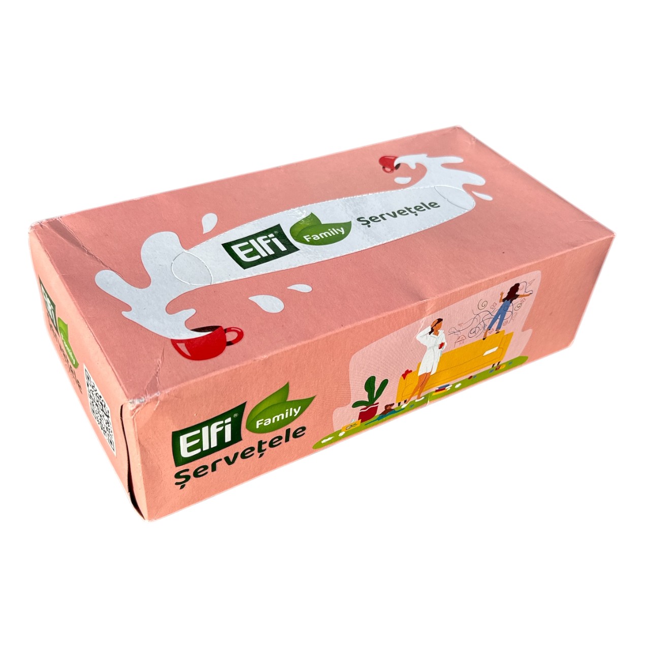 Servetelele fine in 2 straturi de la Elfi ambalate la cutie de 150 de bucati reprezinta un produs versatil, intrucat pot fi utilizate pentru suflarea nasului, stergerea mainilor sau gurii dupa ce mancati. Acestea sunt excelente si pentru spatii precum restaurante, baruri, terase, birouri, fiind foarte bune pentru si pentru stergerea mesei sau altor obiecte si suprafete, contribuind astfel la mentinerea curateniei. Servetelele fine Elfi sunt realizate din celuloza pura, au 2 straturi sunt ambalate intr-o cutie compacta si usor de utilizat, oferind confort in situatii in care timpul este esential. In plus, acestea pot absoarbe lichidele foarte rapid, asfel incat sa eliminati usor petele si murdaria atunci cand varsati sosul, sucul sau apa pe jos sau masa.