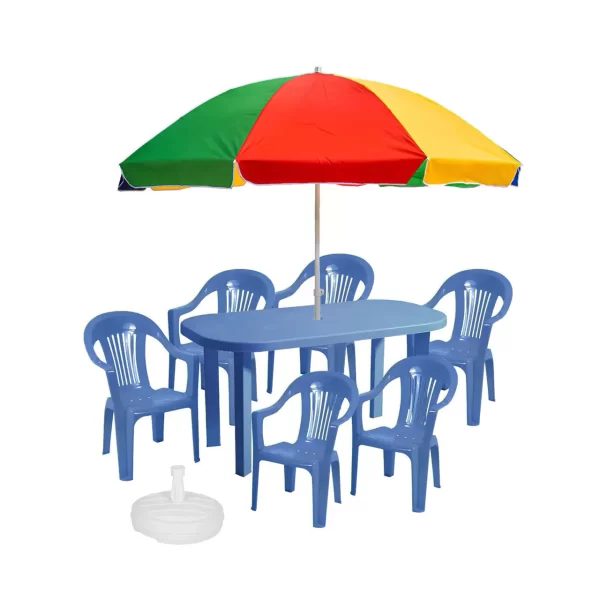 Set mobilier gradina (masa cu umbrela si 6 scaune) albastru