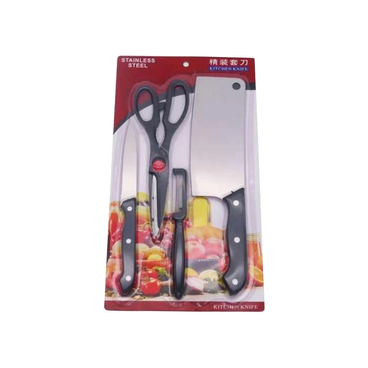 Setul de ustensile de bucatarie din otel include un cutit mic, perfect pentru taierea legumelor, fructelor si a altor alimente de dimensiuni mici, un decojitor de legume si fructe, pentru decojirea rapida si comoda, un satar robust pentru transarea carnii, spargerea oaselor sau legumelor tari si o foarfeca versatila, foolosita pentru o varietate de sarcini, de la taierea verdeturilor la desfacerea ambalajelor. Toate piesele sunt fabricate din otel inoxidabil de inalta calitate, oferind rezistent socuri, uz repetat si coroziune. De asemenea, otelul inoxidabil este un material igienic si sigur pentru contactul cu alimentele, astfel incat puteti folosi aceste ustensile cu incredere in prepararea mancarurilor.