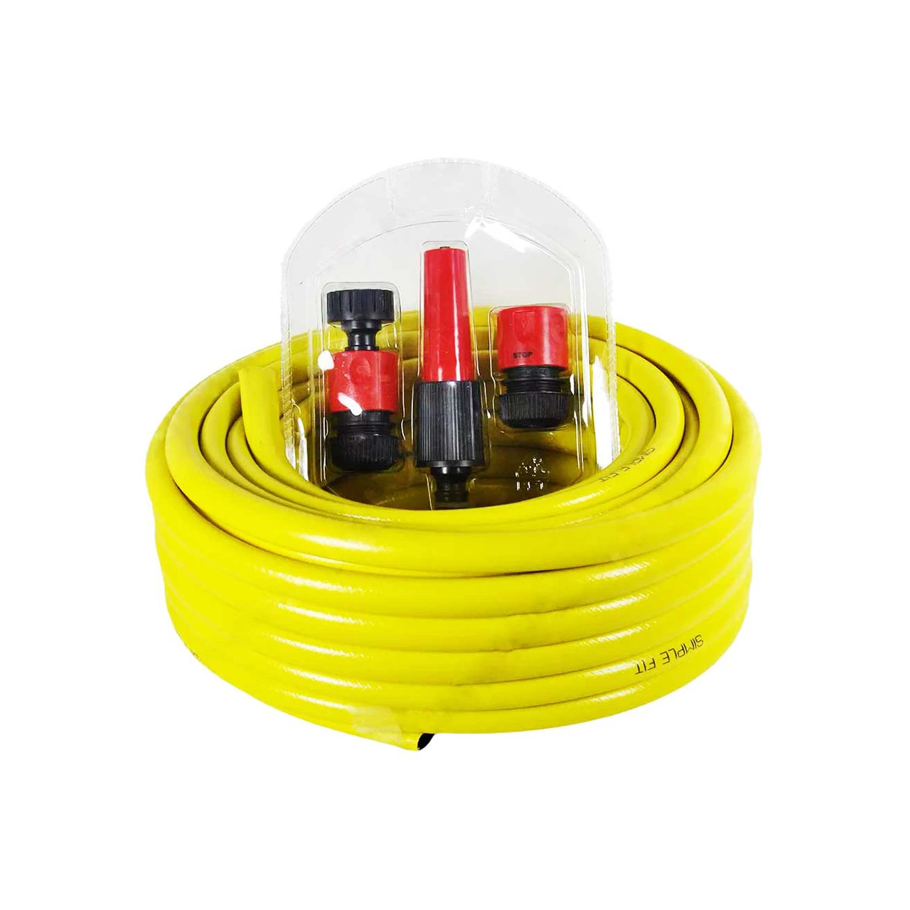 Furtunul de gradina armat si cu accesorii avand diametrul de 1/2 si lungime 20M va este foarte util atunci cand doriti sa udati gradina cu flori, cu zarzavaturi sau livada, intrucat aveti la dispozitie accesoriile necesare de stropit sau de creat prelungiri de furtunuri. Furtunul armat de gradina este alcatuit din 3 straturi de materiale diferite (fibre textile, pvc si intaritori) pentru a asigura o rezistenta superioara impotriva presiunilor inalte (8 bari) razelor solare, variatiilor de temperatura (-10 si maxim 50 de grade), sau intemperiilor. Mai mult de atat, materialele utilizate in realizarea furtunului armat, nu contin cadmiu sau plumb.