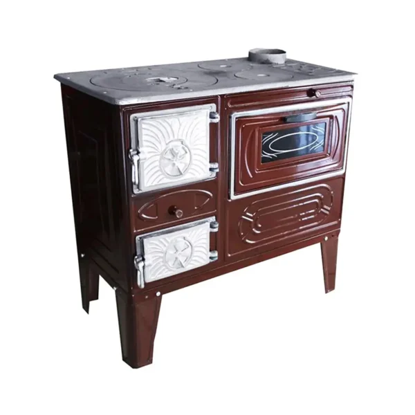 Soba Godin pe lemne cu cuptor incorporat pe partea dreapta, 3 burlane si 3 coturi, este alegerea perfecta pentru a incalzi eficient si confortabil locuinta dumneavoastra. Aceasta soba cu cuptor pe lemne imbina designul traditional atent lucrat cu performanta remarcabila si functionalitate moderna in orice colt al casei. Fabricata din otel emailat si cu un interior samotat, aceasta soba ofera o eficienta termica deosebita, mentinand caldura pentru perioade lungi de timp si creand un mediu confortabil.