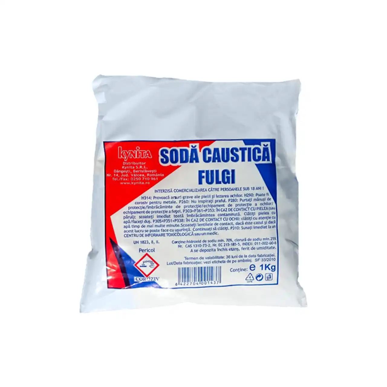 Soda caustica (Hidroxid de sodiu) fulgi 1 kg 70%, 10buc