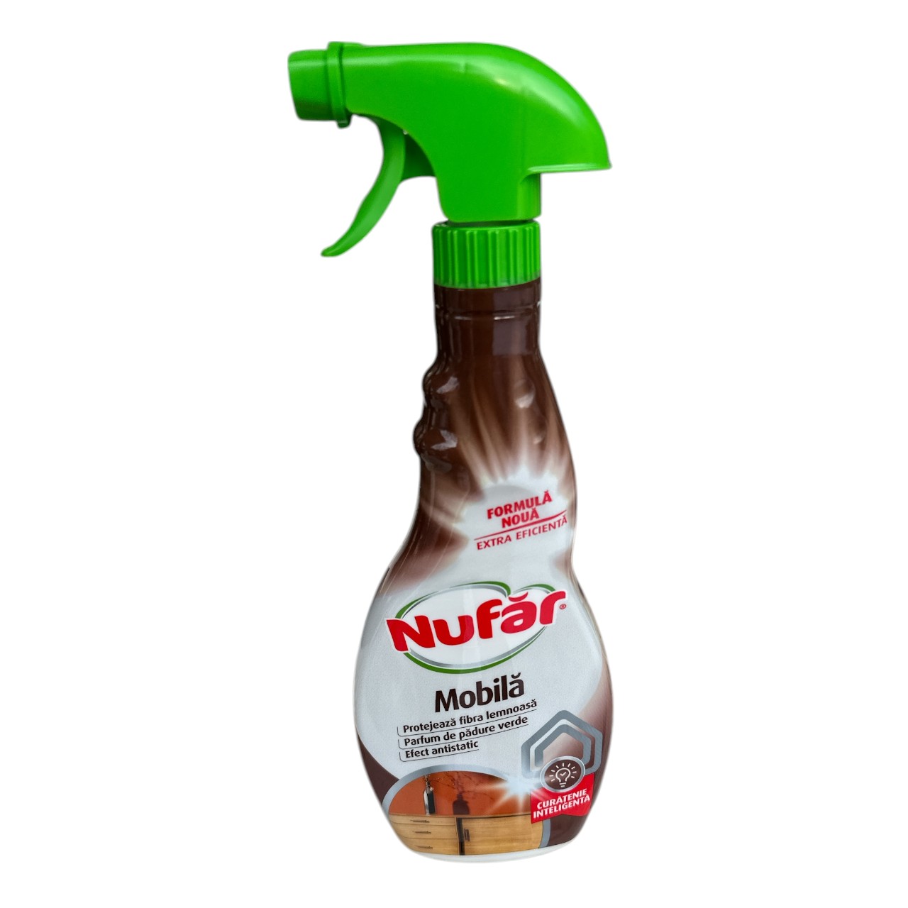 Solutia de curatat mobila Nufar la sticla de 500 ml dotata cu pulverizator, este ideala pentru a mentine mobilierul stralucitor si lipsit de amprente sau murdarie. Aceasta solutie curatare mobila este eficienta pe o gama variata de tipuri de mobilier lucios, asigurand o prospetime intensa si un efect antistatic de lunga durata. Nufar mobila solutie, dizolva usor amprentele si urmele de grasime, lasand mobila curata si stralucitoare. In plus, efectul antistatic previne acumularea prafului si a murdariei, mentinand mobila curata mai mult timp. Parfumul placut al solutiei ofera o prospetime indelungata casei, iar capul cu pulverizator al sticlei faciliteaza aplicarea uniforma si precisa pe orice piesa de mobilier, simplificand procesul de curatare.