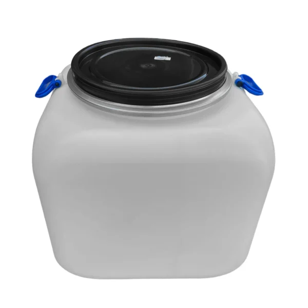 Bidonul de plastic 100 l (litri) in forma de patrat, dotat cu cerc metalic, are culoarea alba si este fabricat din polietilena alimentara, fiind excelent pentru muraturi (varza, castraveti, conpida, gogonele, etc). Bidonul din plastic 100 l are si un capac cu filet, negru si manere mobile fixate pe lateralele superioare ce faciliteaza o buna manipulare atunci cand este gol sau plin. Bidonul plastic 100 litri este rezistent impotriva modificarilor de temperatura, factorilor exteriori si acizilor din alimente, permitand utilizarea sa, ani la randul. Mai mult decat atat, un astfel de bidon plastic 100l poate fi utilizat si in scopuri industriale, pentru depozitarea si transportarea diferitelor solutii de curatat, uleiuri sau alte substante toxice.